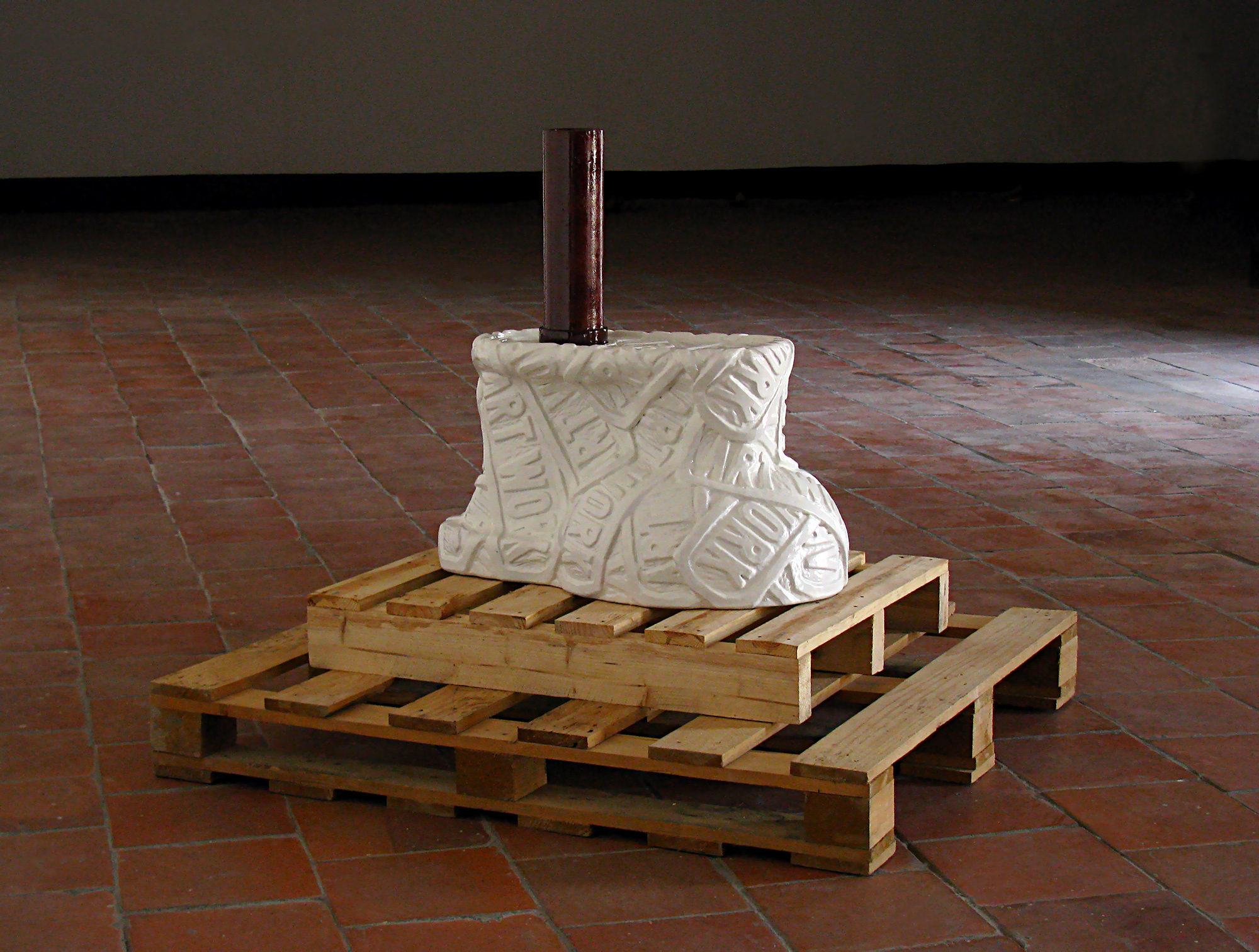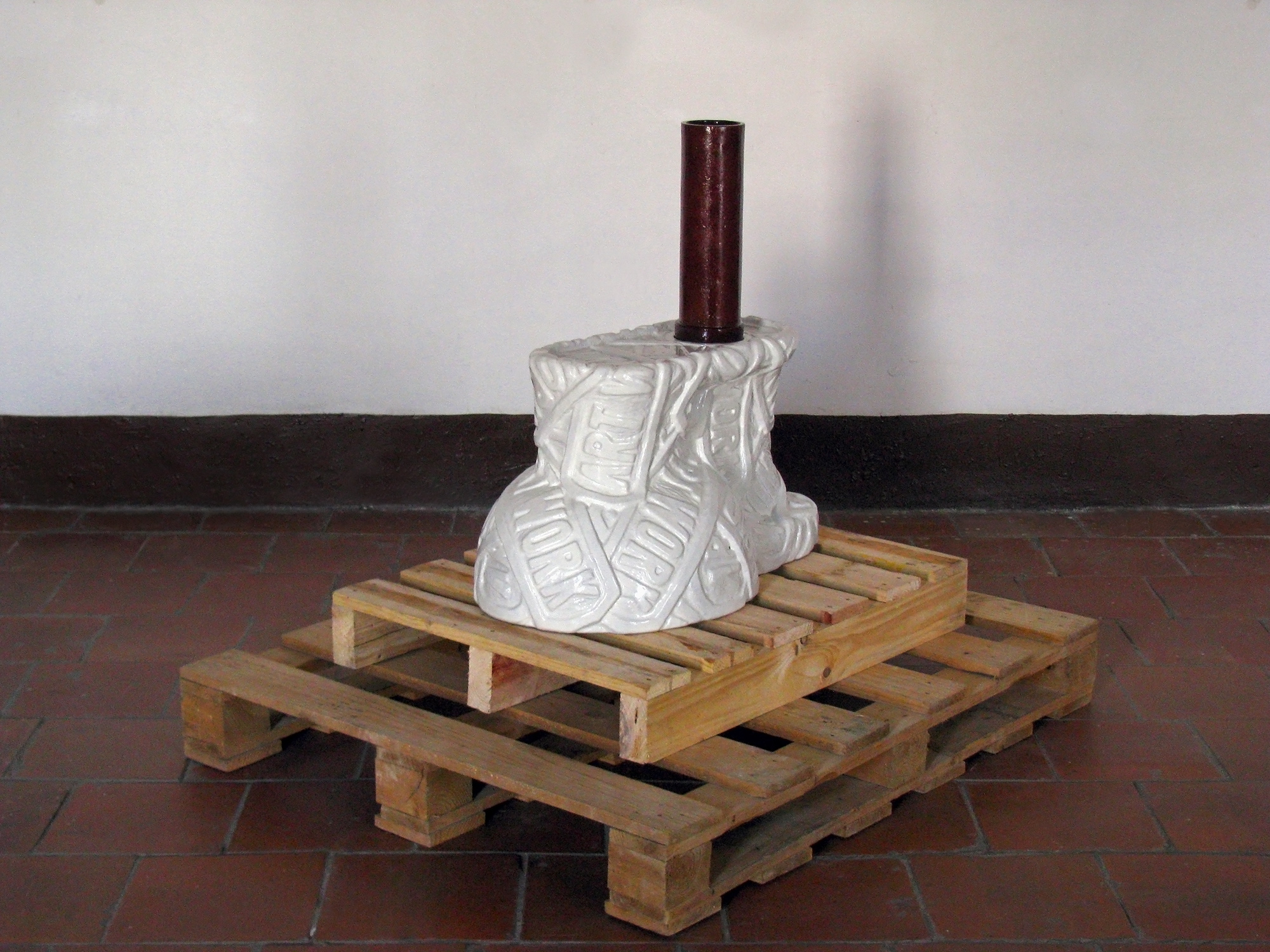 Stonware/cone 2 oxidation, wooden pallet ; 30 x 47 x 39 inches.