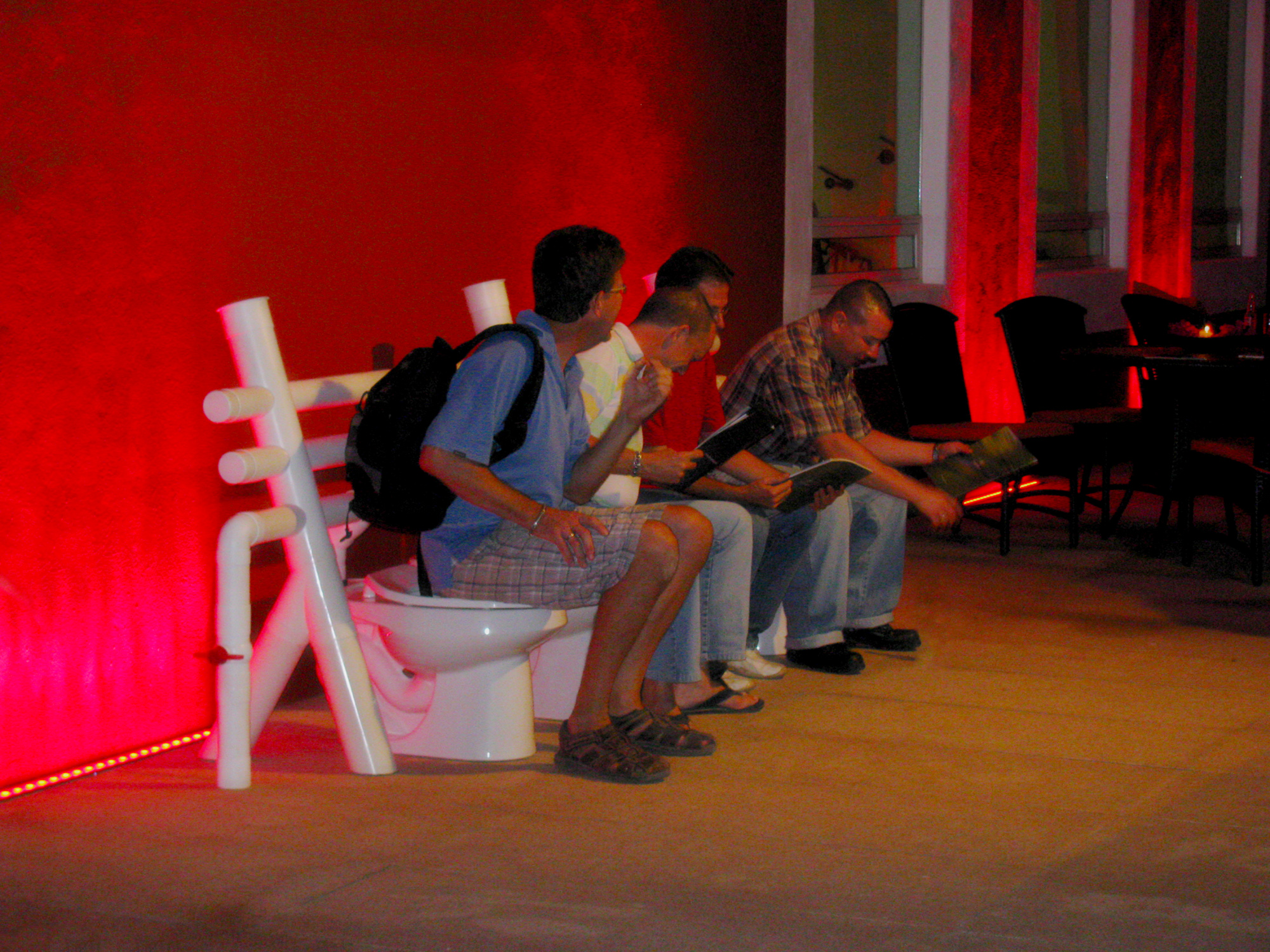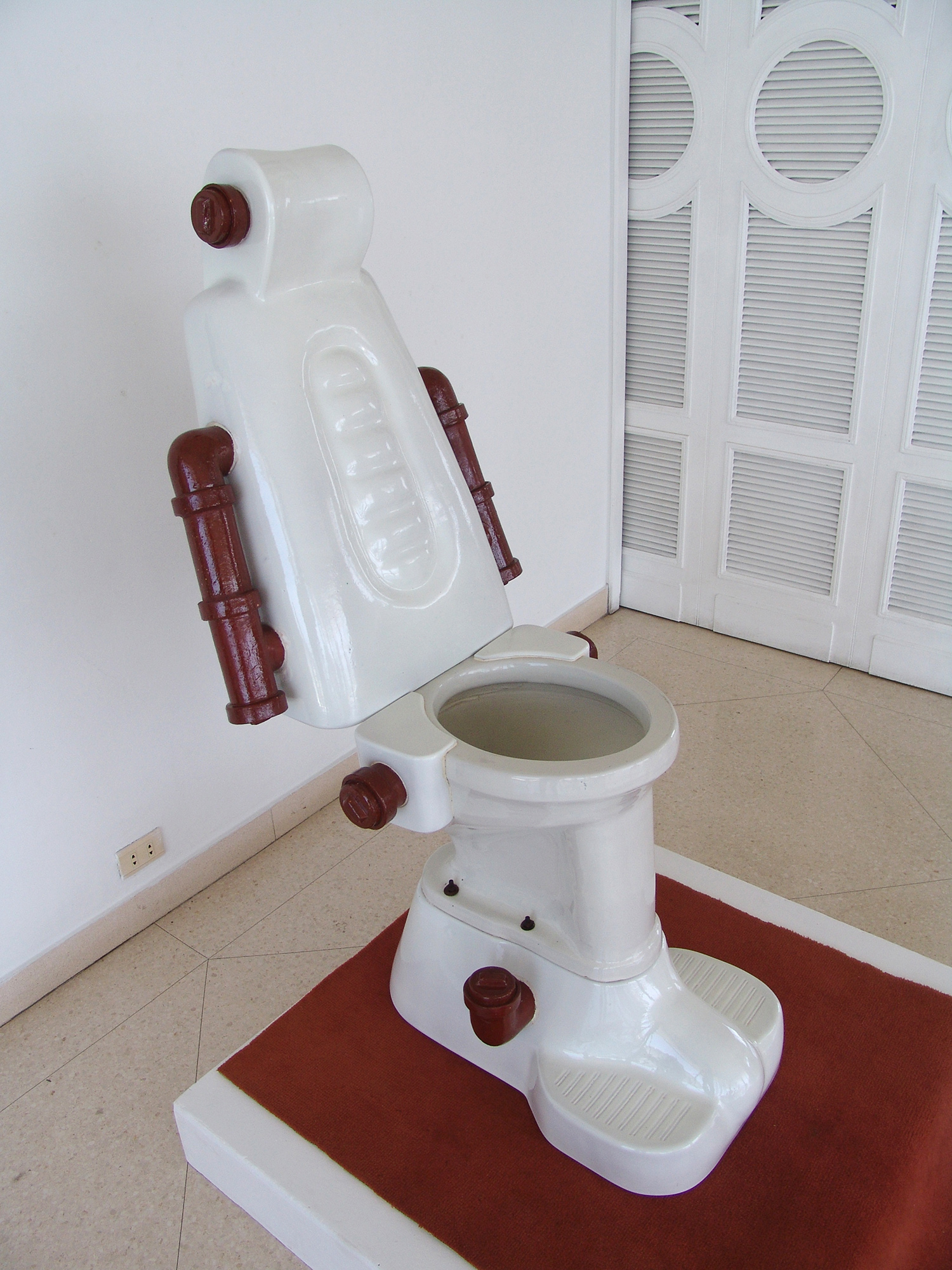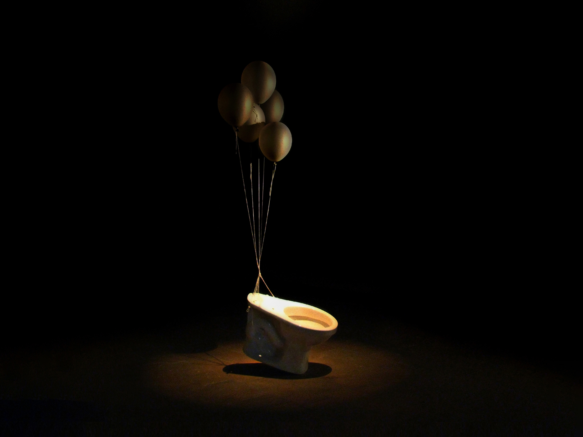 Industrial toilet bowl, ballons; 84 x 39 x 30 inches.